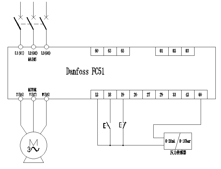 在水泵應(yīng)用中,我們經(jīng)常會接觸到恒壓控制系統(tǒng)。丹佛斯FC51變頻器自帶PI調(diào)節(jié)功能,能實現(xiàn)恒壓供水控制。但是恒壓供水系統(tǒng)中還有很多其他功能,例如:休眠功能,我們就可以使用FC51自帶的SLC功能來實現(xiàn)。