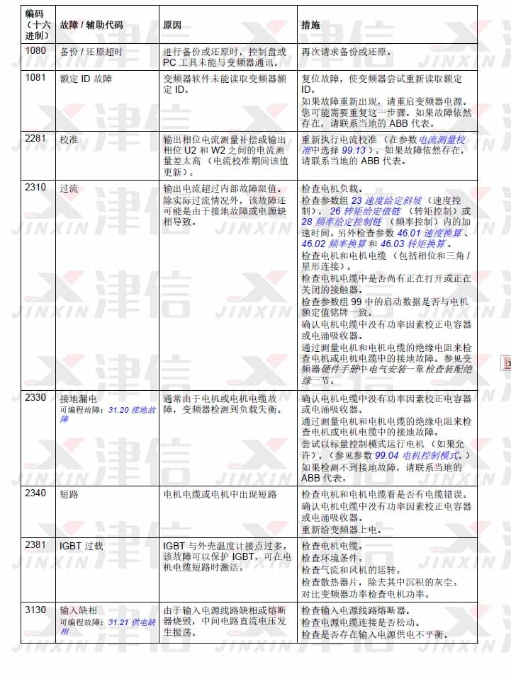 ABB ACS580變頻器故障代碼1080,1081,2281,2310,2330,2340,2381,3130