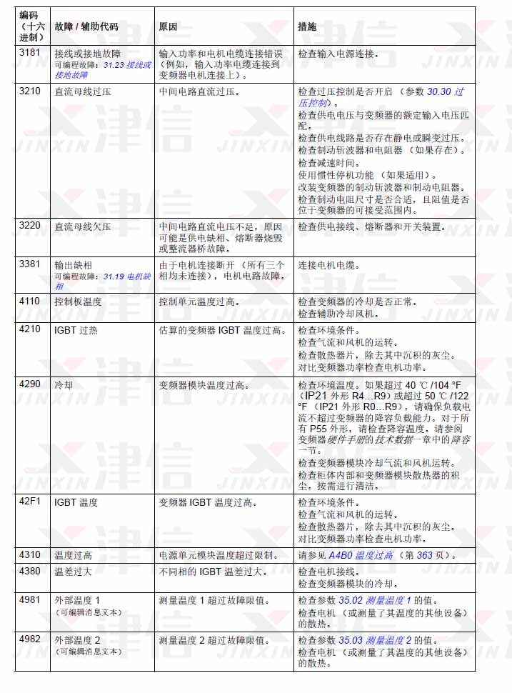 ABB ACS580變頻器故障代碼 3181,3210,3220,3381,4110,4210,4290,42F1,4310,4380,4981,4982