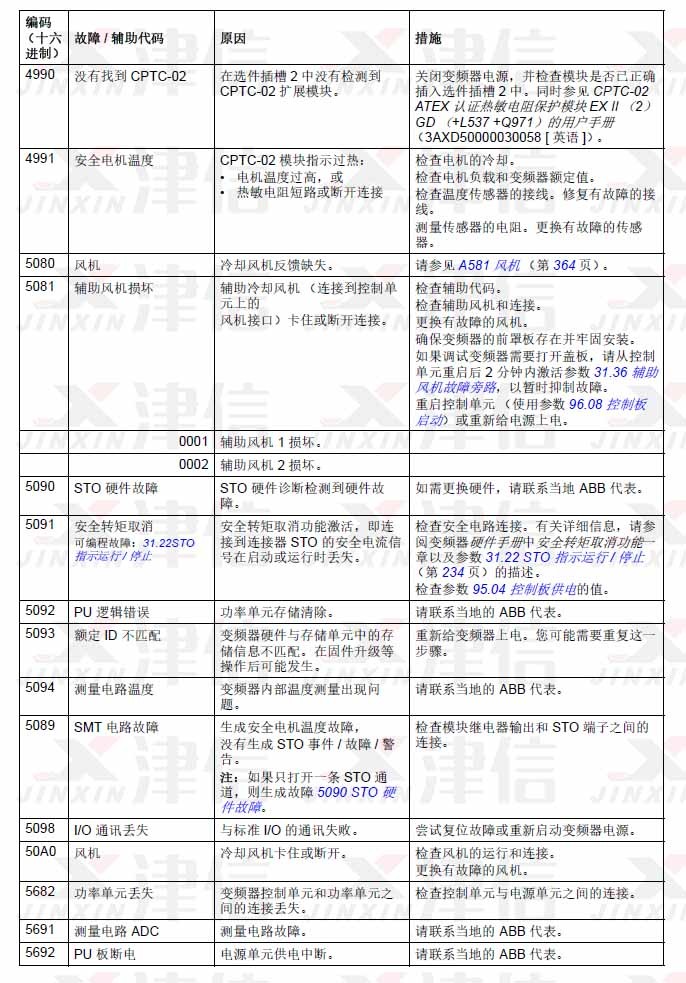 ABB ACS580變頻器故障代碼4990,4991,5080,5081,5090,5091,5092,5093,5094,5089,5098,50A0,5682,5691,5692