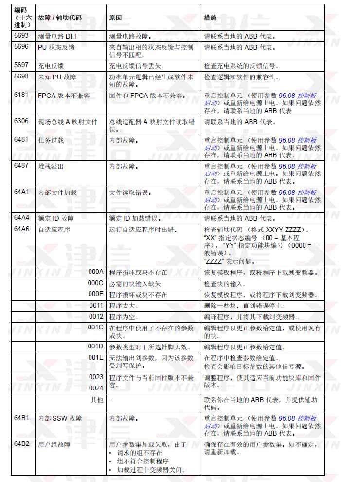 ABB ACS580變頻器故障代碼5693,5696,5698,6181,6306,6481,6487,64A1,64A4,64A6,64B1,64B2