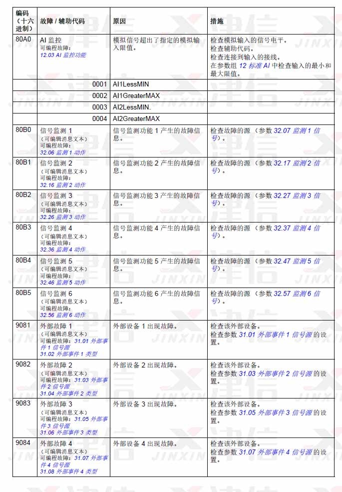 ABB ACS580變頻器故障代碼80A0,80B0,80B1,80B2,80B3,80B4,80B5,9081,9082,9083,9084