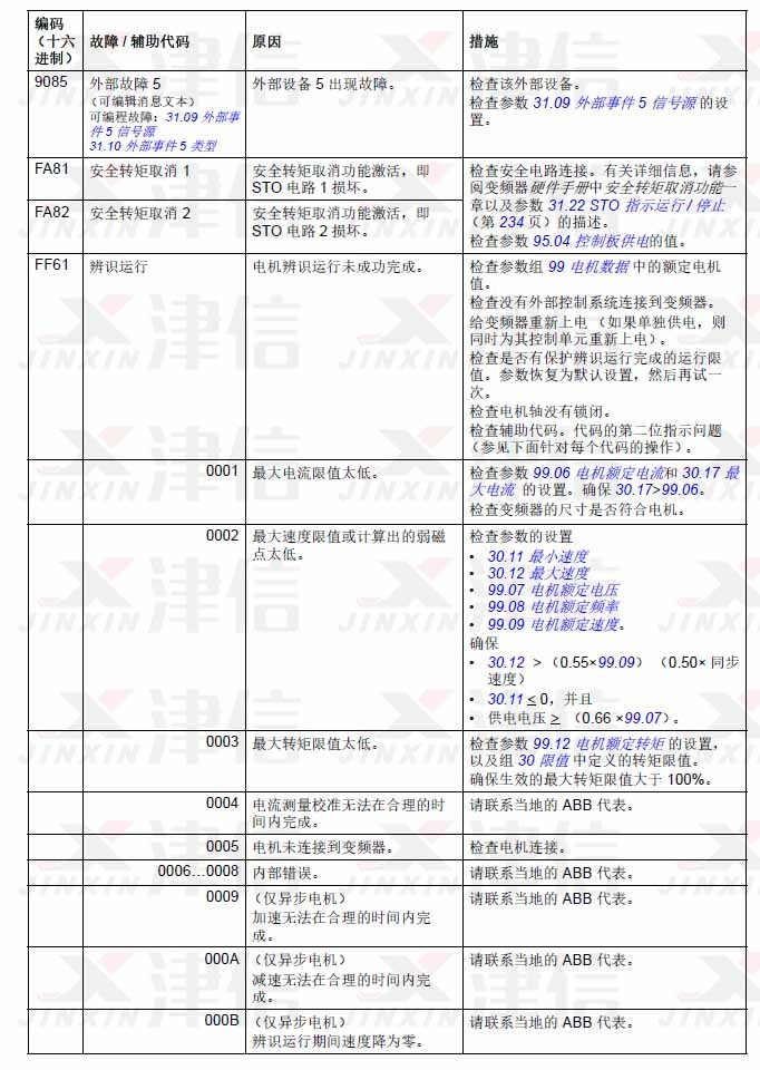 ABB ACS580變頻器故障代碼9085,Fa82,FA83,FF61,FF63,FF81,FF8E