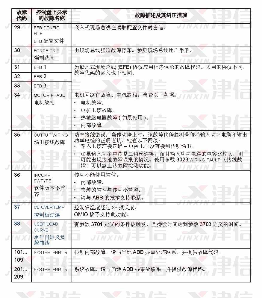 四、ABB ACS550 故障代碼F0029,30,31,32,33,34,35,36,37,38,101-109,201-209
