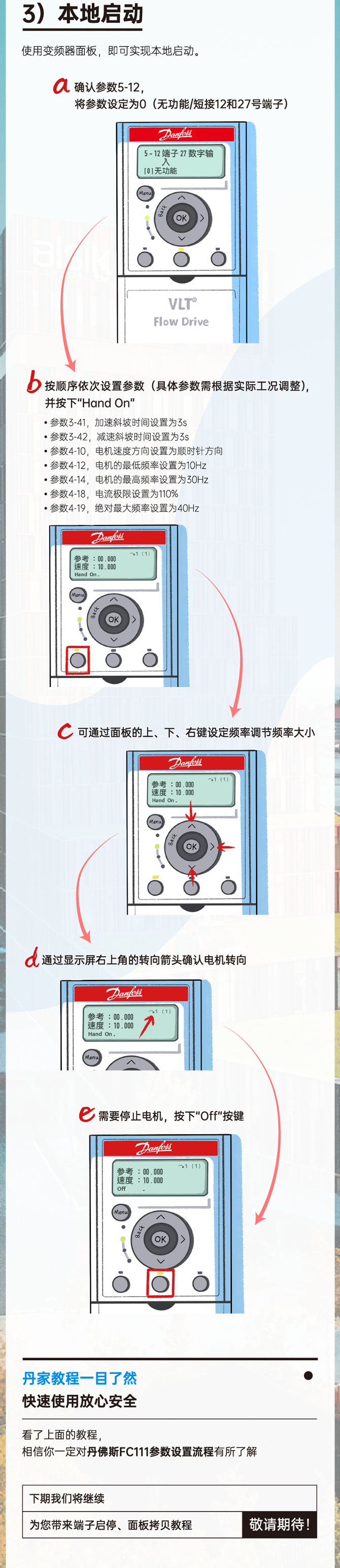 丹佛斯變頻器設(shè)置電機(jī)參數(shù)和本地啟動(dòng)的方法