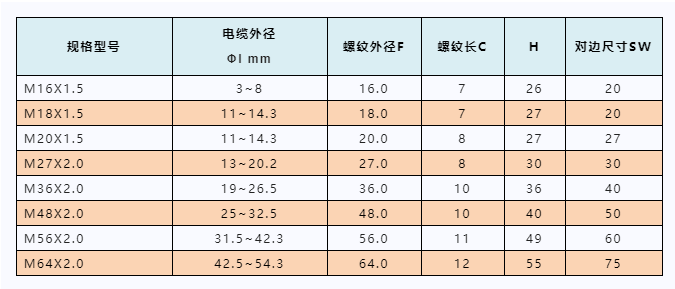 電纜填料函推薦采用船用電纜TJ型防水填料函和相應(yīng)規(guī)格尺寸的GMP尼龍螺母,其中TJ型夾緊式填料函采用黃銅鍍鎳外殼和硅橡膠芯套,能夠滿足IP68防護(hù)等級,適用于船舶、造船行業(yè)的使用標(biāo)準(zhǔn)。GMP尼龍螺母可以工作于-40℃至100℃,能滿足對電纜線徑范圍在3-90mm的緊固和密封。