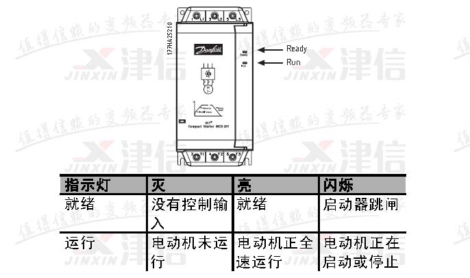在MCD200軟啟動器面板上,有就緒和運行兩盞顯示燈,當正常運行時,運行燈亮,當發(fā)生故障時,就緒顯示燈會出現(xiàn)閃爍,并以不同閃爍次數(shù)代表不同的故障含義: