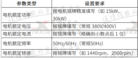 菜單鍵進(jìn)入?yún)?shù)組 → 翻頁(yè)鍵選擇參數(shù)號(hào) → 加減鍵調(diào)整數(shù)值 → 確認(rèn)鍵保存 → 退出鍵返回待機(jī)界面,所有參數(shù)嚴(yán)格按電機(jī)銘牌填寫,避免電機(jī)運(yùn)行異常。