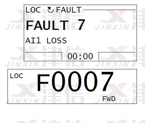 7 AI1 LOSS模擬輸入1丟失。模擬輸入值小于AI1 FAULT LIMIT(3021)。