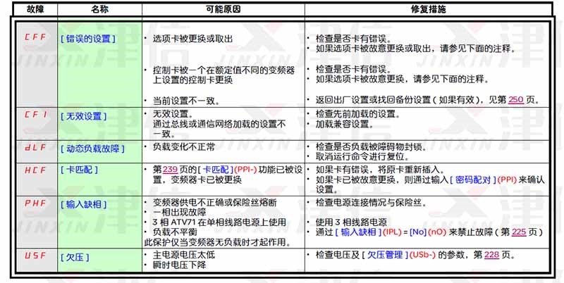 施耐德ATV71變頻器故障分為兩種,一是不能自動(dòng)復(fù)位的故障,二是可以自動(dòng)復(fù)位的故障。