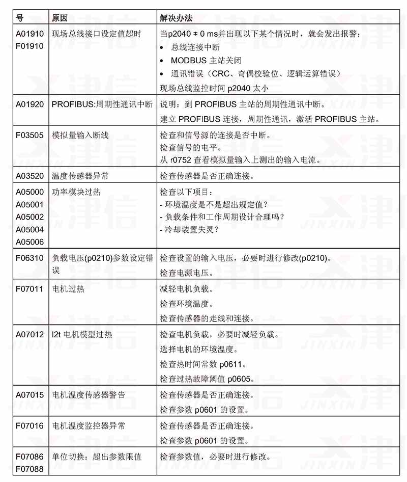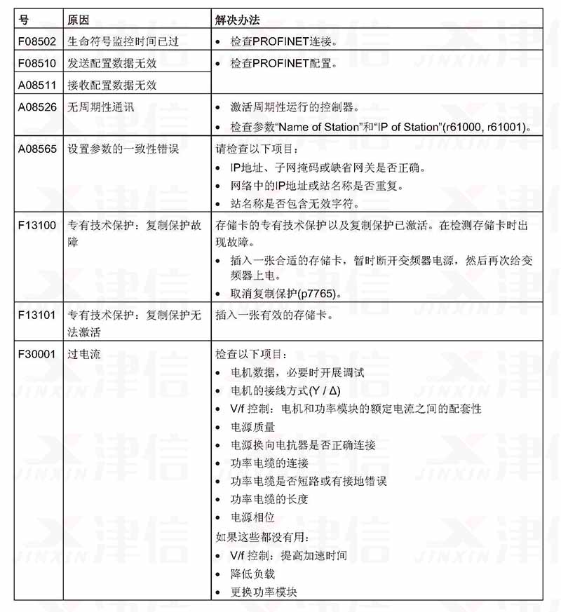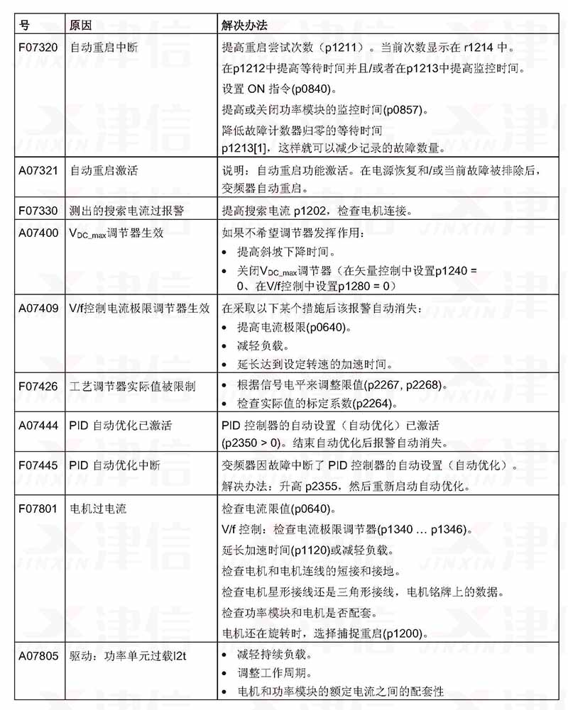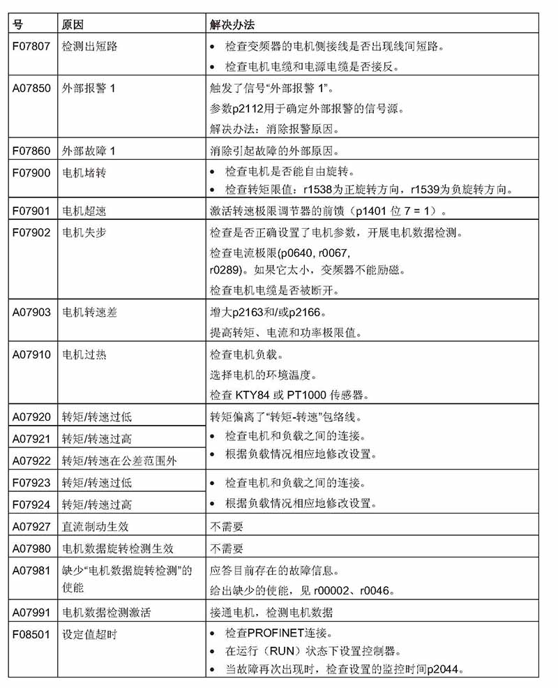 在使用過程中,西門子S120、G120出現(xiàn)故障,可以通過以下內(nèi)容查詢故障原因并采取維修對策。