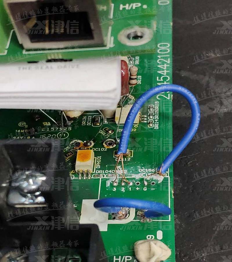 將電流傳感器拆除做單板測(cè)試,送電后仍然報(bào)警cd3.1,根據(jù)電流傳感器線(xiàn)路,將板卡上的G點(diǎn)和1,2,3三個(gè)點(diǎn)短接(如下圖3所示)   傳感器型號(hào):6900,(如下圖4所示)