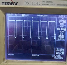 6,查看電源卡開關電源部分的圖紙,檢查IC2844的前級啟動電阻和整流橋均正常,最后檢查脈沖變壓器供給IC2844的次級供電回路,發(fā)現(xiàn)啟動電容降容超出15%,判定為損壞,將此電容更換后,再次上電機器顯示正常,測量開關管驅動波形正常,原故障修復。以下是2844輸出的正常波形。