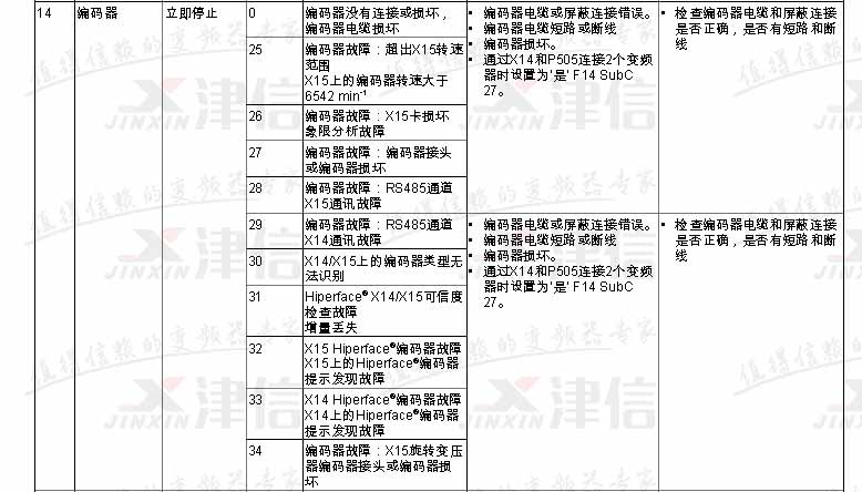 SEW變頻器故障代碼F36,F(xiàn)37,F(xiàn)38,F(xiàn)39,F(xiàn)40,F(xiàn)41,F(xiàn)42,具體如下: