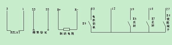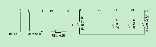 K6和K7分別控制電機正反轉(zhuǎn),K4為使能端;頻率給定方式是PLC輸出0--+10V的電壓信號對應(yīng)0—50HZ;并且KEB也是利用變頻器自身的+15V源極開機方式.以上條件丹佛斯VLT2800全部可以滿足并且能夠達到客戶所有要求的功能.