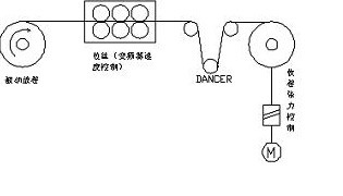 3,收卷:線速度同步+恒張力控制,有跳舞輪位置反饋,變頻器作閉環(huán)工藝控制,控制跳舞輪的位置。