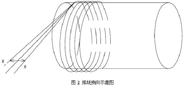 在解決方案中,著重改善收線排線和放線排線的方向切換,如圖2所示,在排線到收線盤邊緣時,即換向時提高排線伺服速度,從該排線方向的排線成型角度跳轉到相反排線方向的排線成型角度,消除了低速換向導致的凸肩現象,使排線平整。