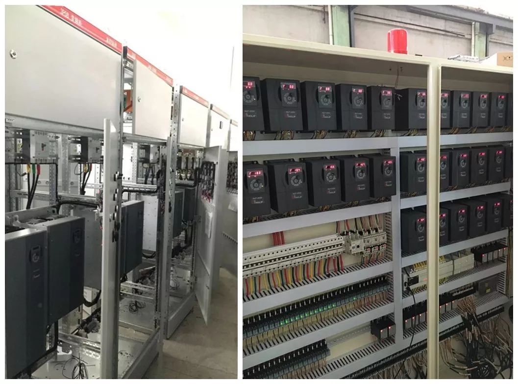 外加空壓機(jī)、羅茨風(fēng)機(jī)等。整線配備電機(jī)200余套,裝機(jī)容量超過(guò)1600 kW,可見變頻器在節(jié)能上大有作為。
