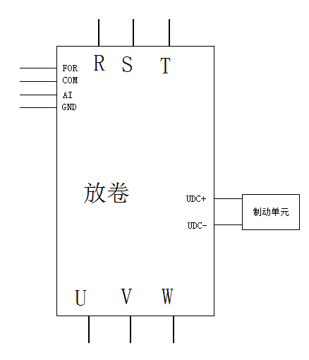 - 放卷變頻器采用開環(huán)轉(zhuǎn)矩控制,電機處于發(fā)電狀態(tài),必需接制動單元,并且與收卷變頻器共直流母線;