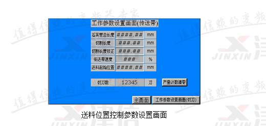 改造系統(tǒng)采用三臺Danfoss變頻器和兩塊MCO305,以及一個臺達HMI。系統(tǒng)采用RS485通訊。主機旋轉采用4kW變頻器直接拖動,通過HMI直接設定其運行頻率。送料位置控制參數(shù)如下圖所示。這些參數(shù)在變頻器第19組參數(shù)開放出來,之所以采用HMI,主要是為了方便用戶進行操作。